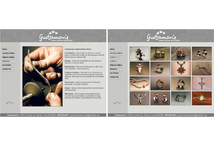 < previous | next > Gusterman's Silversmiths - website design